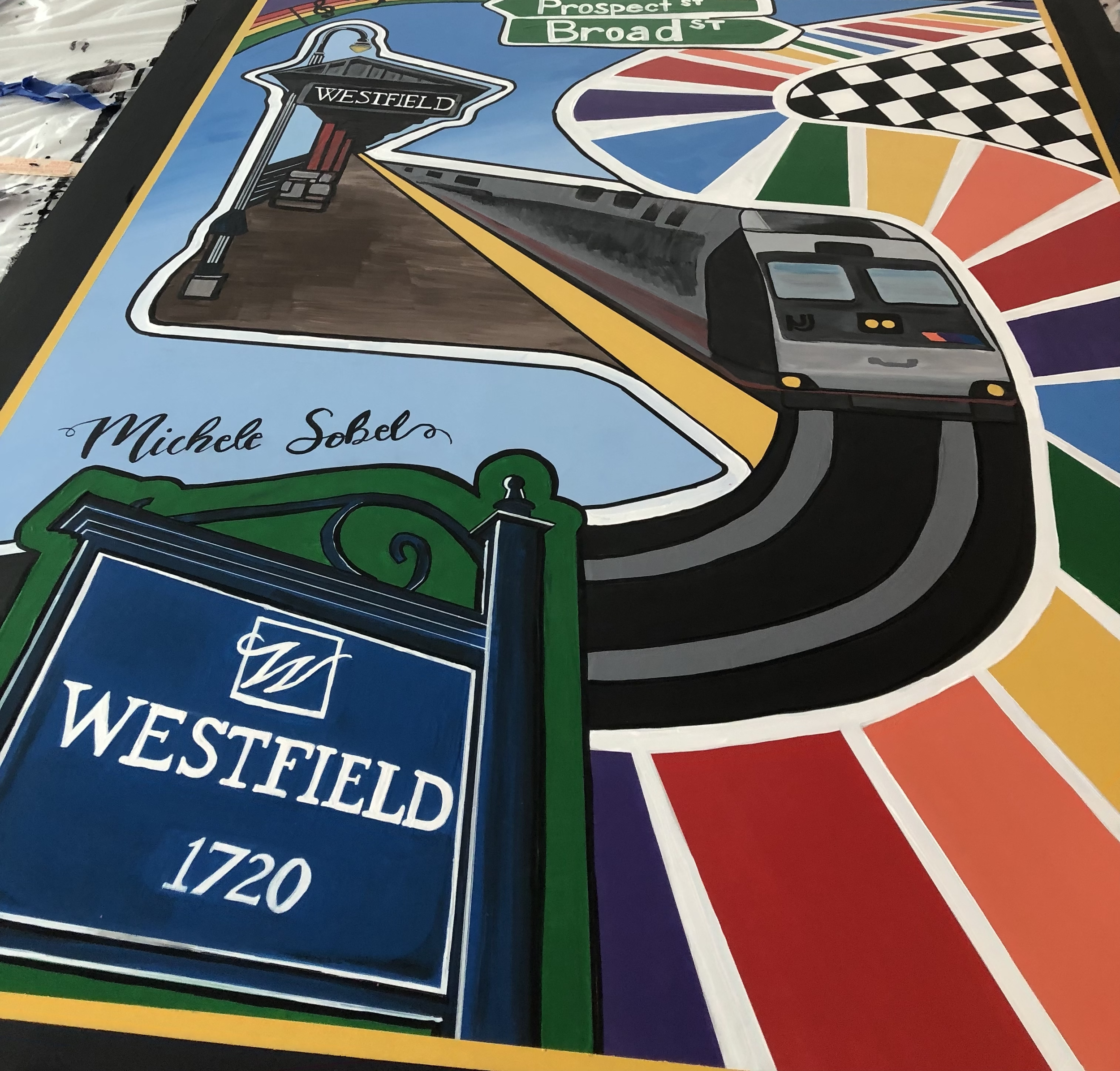 You can visit Michele's mural installed, along with other local artist’s murals, on Central Avenue in downtown Westfield, under the train station underpass.